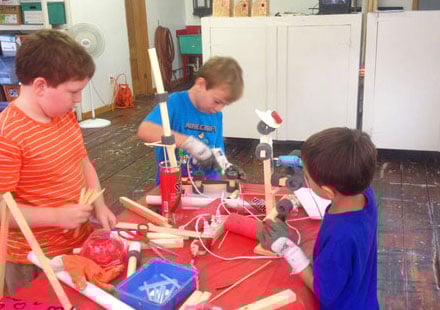 Designing soap box racing cars, 3-D Creation using vintage found books, making Hanukiahs, workshops in 3 color reduction printing, and building balance boards are some of the specialized programs that we have offered.